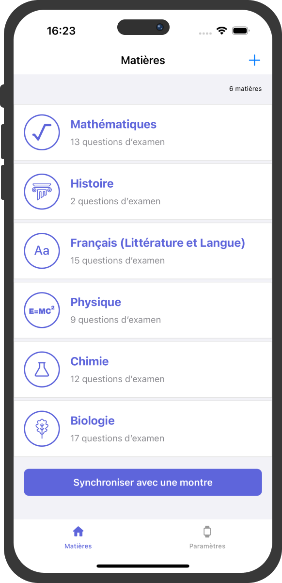 Ajoute les matières requises, puis rédige des réponses par sujets et par billets – l'application organisera toutes les informations par elle-même.