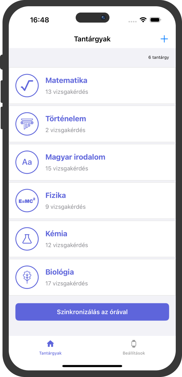 Adja hozzá a kívánt tantárgyakat, majd írja be a válaszokat témák szerint – az alkalmazás minden információt rendszerez.