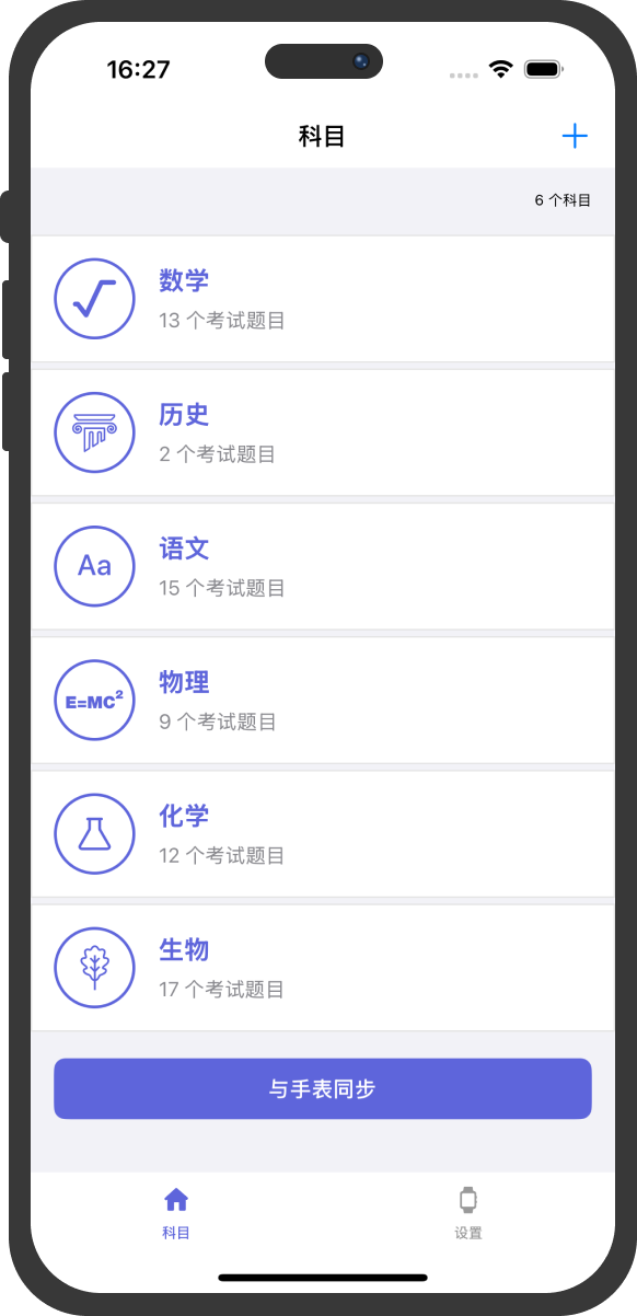 添加您想要的科目,然后根据主题写下答案——应用将整理所有信息。